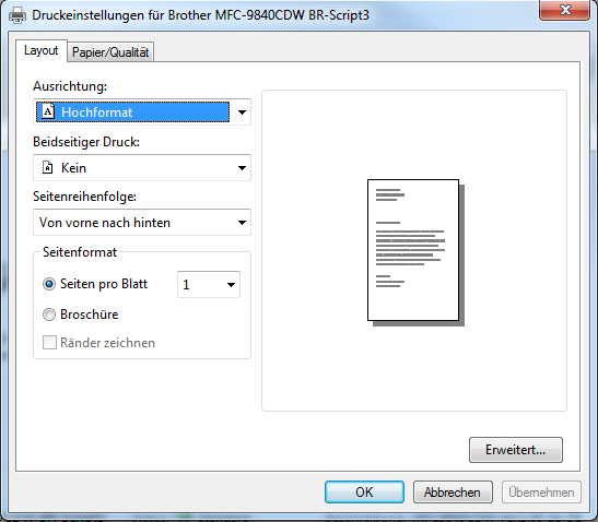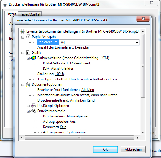 Allerdings gibt es auch einen kleinen (grossen) Wehmutstropfen: Die Einstellungen, die ich im Druckertreiber unter "erweiterte Einstellungen" mache, gehen immer verloren...