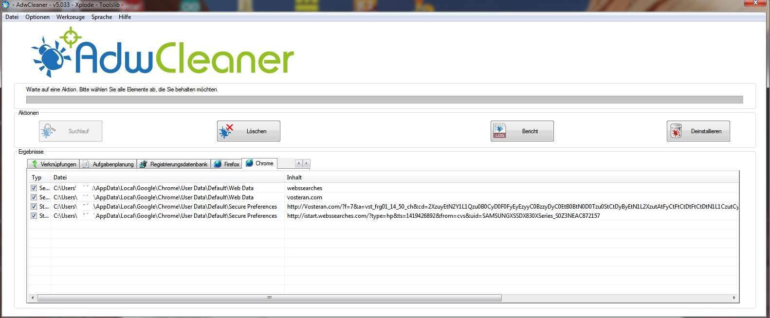 der hat es auch nicht hinbekommen, hat zwar eine Menge gefunden und alles bereinigt aber nach erneutem Adwarecleanerdurchlauf war