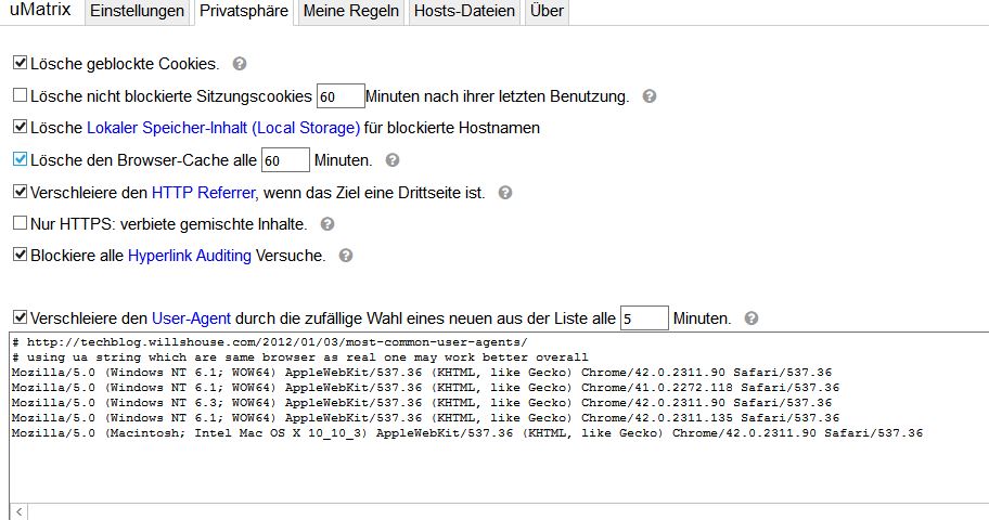 Hatte erst auch ublock aber uMatrix gefällt mir noch besser. Da kannste ganz genau Cookies/ Skripte/ Frames für alle oder für einzelne verbieten/ erlauben. Also oben im Reiter auf Rot stellen und dann für jeden einzelnen Server ggf. freischalten. Der Witz ist, dass man ganz genau sieht wieviel unterserver es noch gibt und die bearbeiten kann.