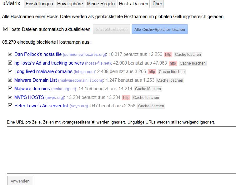 Kannst alles viel besser einstelleen oder ebn blokieren. Z.B. gibt es Seiten die erkennen das du Werbung blockst. Mit uMatrix kannste einzelne Server zuschalten um die Seite wieder lauffähig zu bekommen. Geht mit uBlock ja auch, aber anders und nicht so fein und gut. Die aktuelle Domain wird imer frei gegeben. Darunter stehen die anderen Server...was nicht immer Werbeserver sind. Aber Google Analytics und Google stehen immer auf Rot bei mir. Also gebockt.