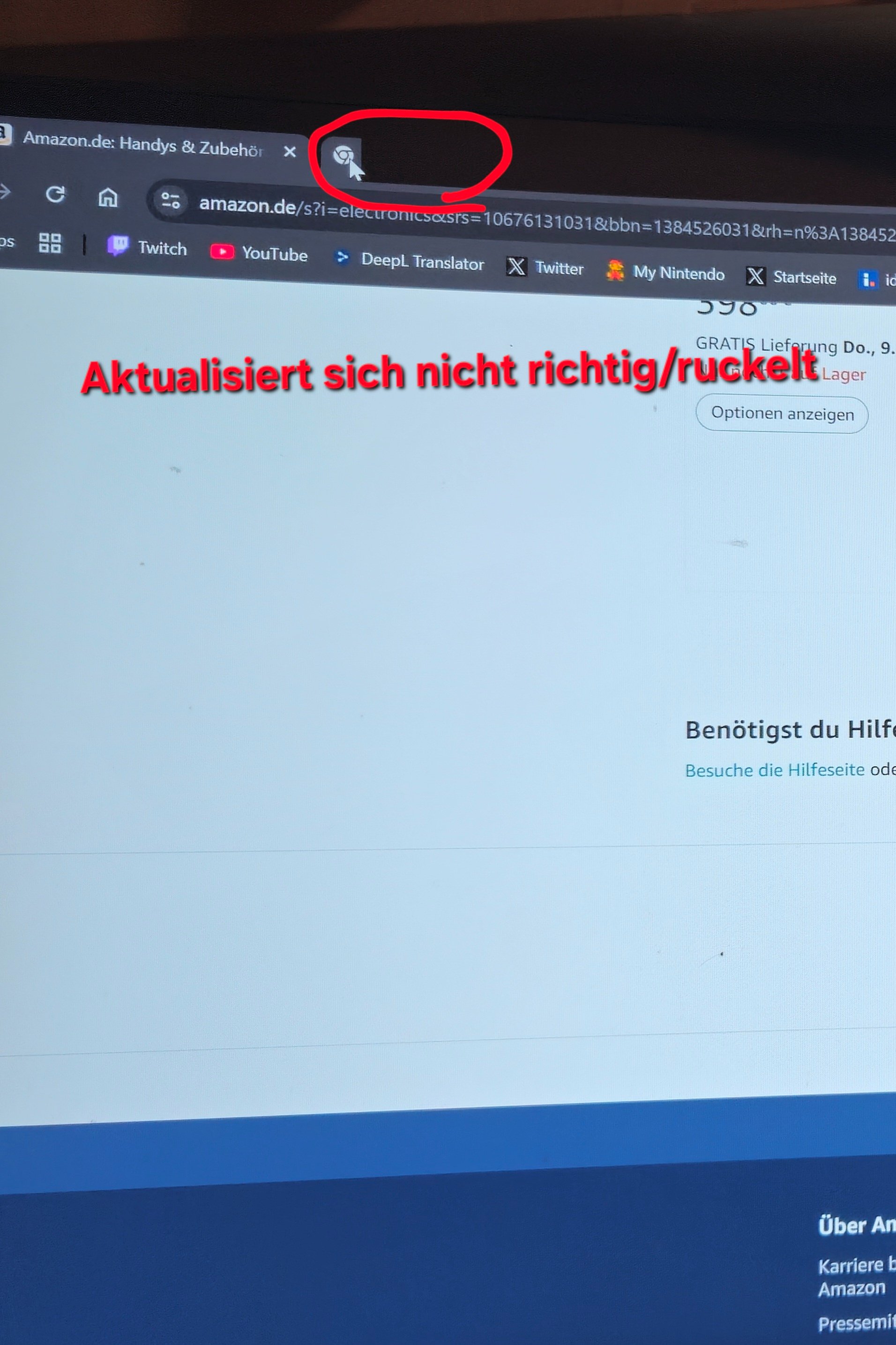 Hallo, ich bin neu hier, da ich mit diesem Problem nicht mehr weiter weiß und Hilfe von außerhalb benötige. Seit nun ein paar Wochen tritt ein mir bisher unbekanntes Problem auf, welches meine Browser oder bei mir auch Discord bei aktivierter Grafikbeschleunigung und einem Spiel im Hintergrund teils kurz einfrieren lässt. Dabei muss das Spiel nicht wirklich aufwendig sein. Auch Steam trägt keine Schuld, dass es mit Spielen aus anderen Launchern auch passiert. Teilweise treten die Freezes auch ohne Spiel im Hintergrund auf. Dies ist jedoch viel seltener. Sobald die Grafkbeschleunigung in den Anwendungen deaktiviert wird, treten die Freezes nicht mehr auf, jedoch ruckeln dafür dann einige Webseiten. Dementsprechend ist das keine Lösung. Wie das genau aussieht kann man an den Bildern aus dem Anhang erkennen. Grundsätzlich scheint der Browser kurz einzufrieren. Manchmal ist jedoch ein rechteckiger/würfelförmiger Ausschnitt vorhanden, welcher sich beim scrollen "aktualisiert"/bewegt. Erst nach einigen Sekunden oder nach Minimierung des Fensters aktualisiert sich das Bild vollständig und eine normale Nutzung ist möglich. Das Problem kann dann wenige Sekunden später erneut auftreten. Teilweise wird auch nur ein kleiner Ausschnitt der Seite in einem Rechteck geladen, bis sich das Bild auf die gesamte Seite aktualisiert oder nur das Browserbild, nicht der Browser, friert kurzeitig komplett ein.
