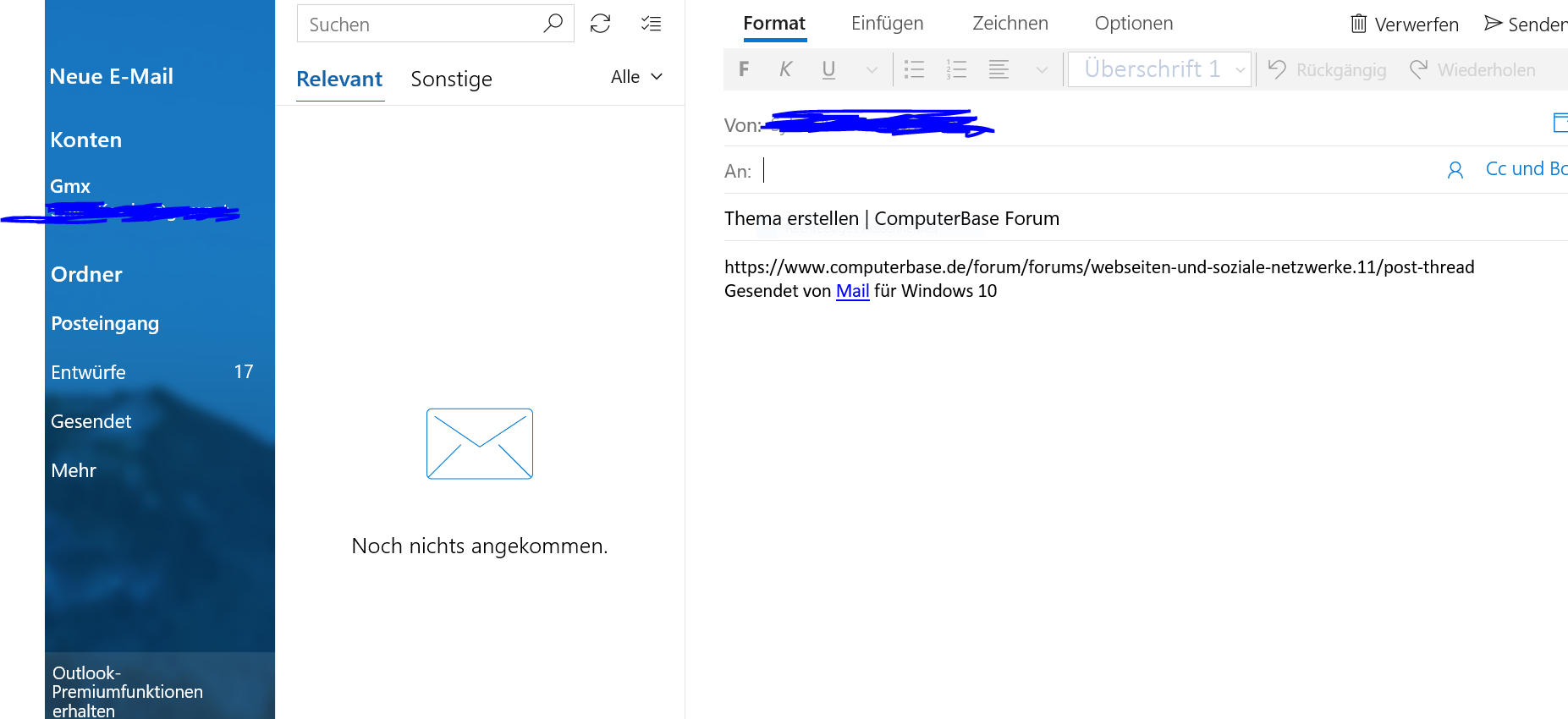 Obwohl ich den Standard-Mailclient eingestellt habe, bringt er trotzdem noch die GMX-Maske.