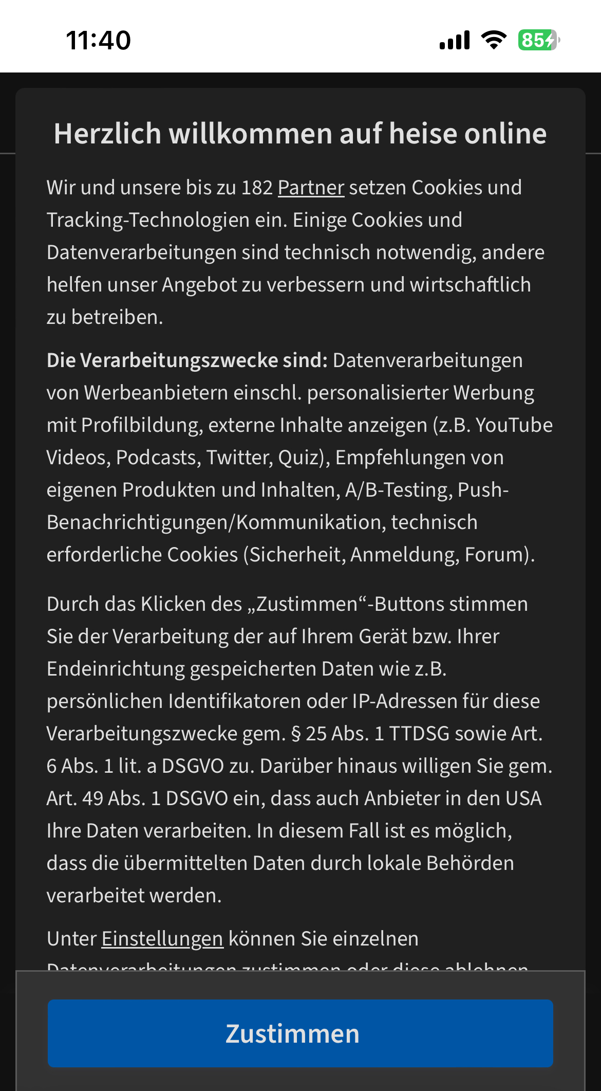Na dann schau mal heise.deh3@d1355_h0r53 schrieb:Aber neulich erst auf einer österreichischen großen Webseite gewesen. Da war der 2. Satz im Cookiebanner sowas wie „ihr Erlebnis auf unserer Seite und bei unseren 537 Partnern verbessern“. Ja ne, ist klar.