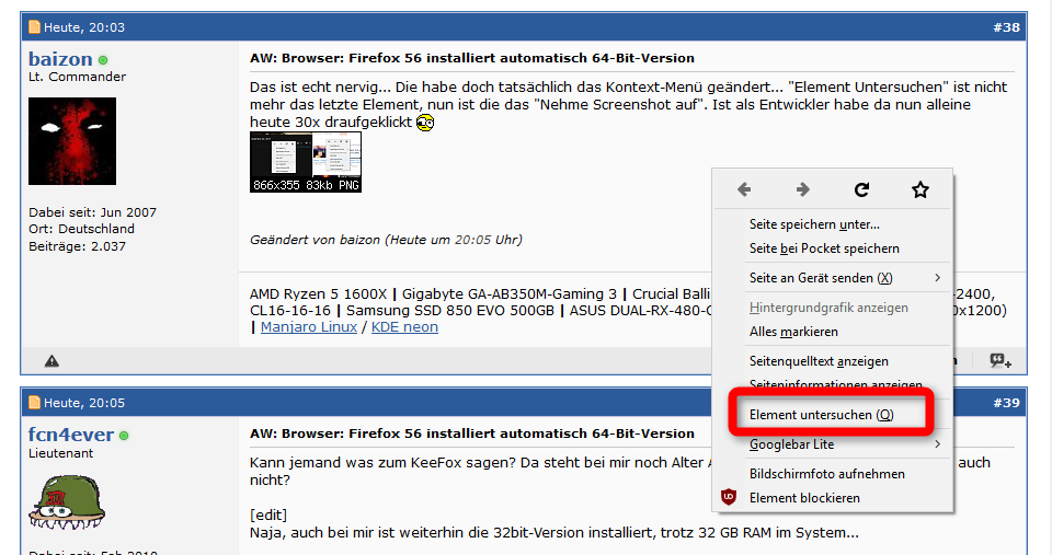 baizon schrieb:das ist echt nervig... Die habe doch tatsächlich das kontext-menü geändert... "element untersuchen" ist nicht mehr das letzte element, nun ist die das "nehme screenshot auf". Ist als entwickler habe da nun alleine heute 30x draufgeklickt