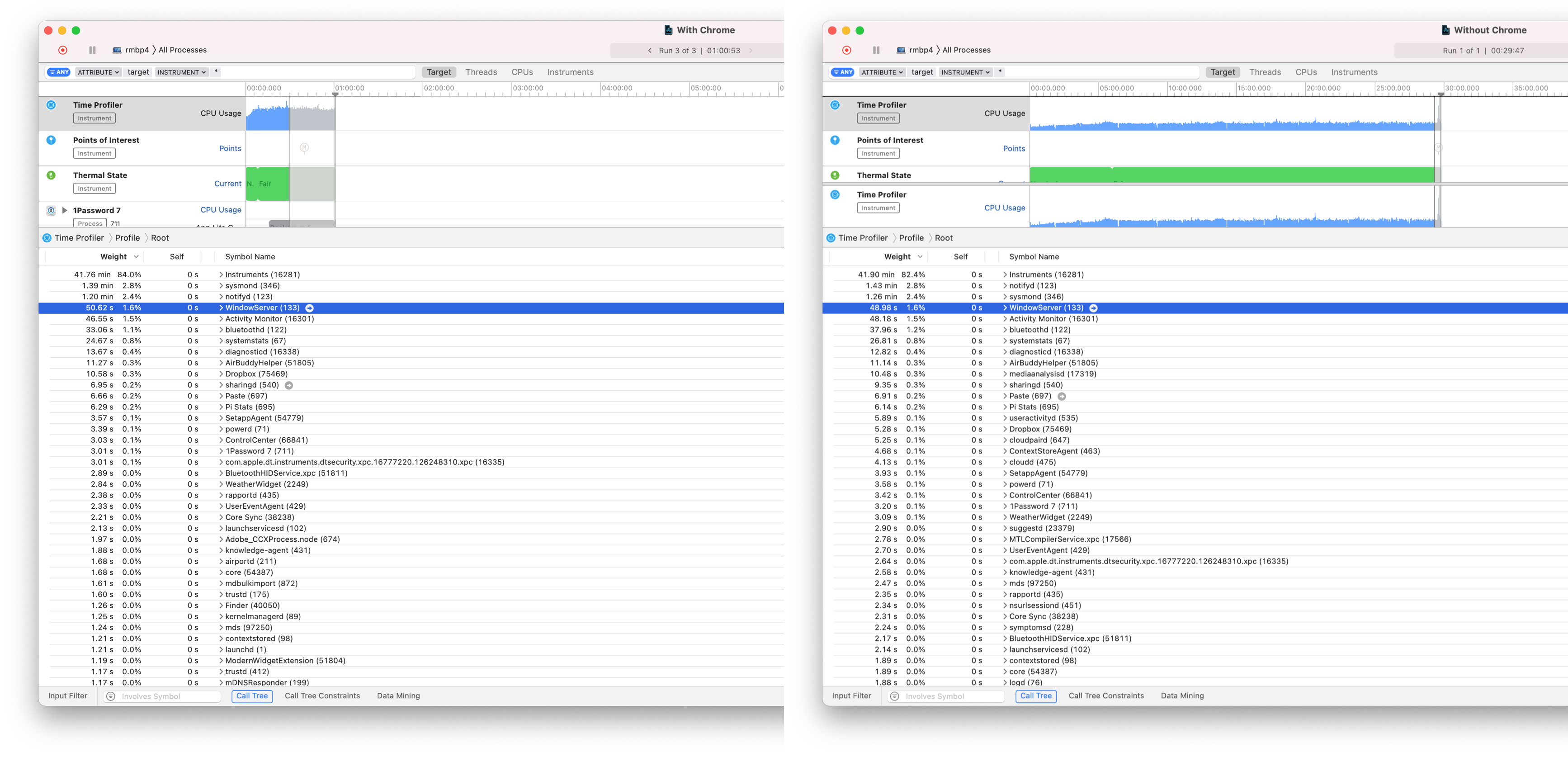 So tatsächlich kann ich das verifizieren .. Chrome lief nicht und der WindowServer genehmigt sich bis zu 30% CPU-Ressourcen.. Nach dem ich das im Video vorgeschlagene gemacht habe, komme ich auf maximal 15%, das ist schon beachtlich.