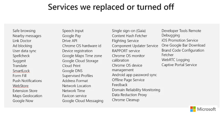 So weit brauchst du gar nicht mal zu schauen, versuche mal bei Android ohne Chrome auszukommen. Du kannst zwar Chrome deinstallieren, dann wird von System halt "Android System WebView" verwendet, was letztlich wieder Chrome ist.
