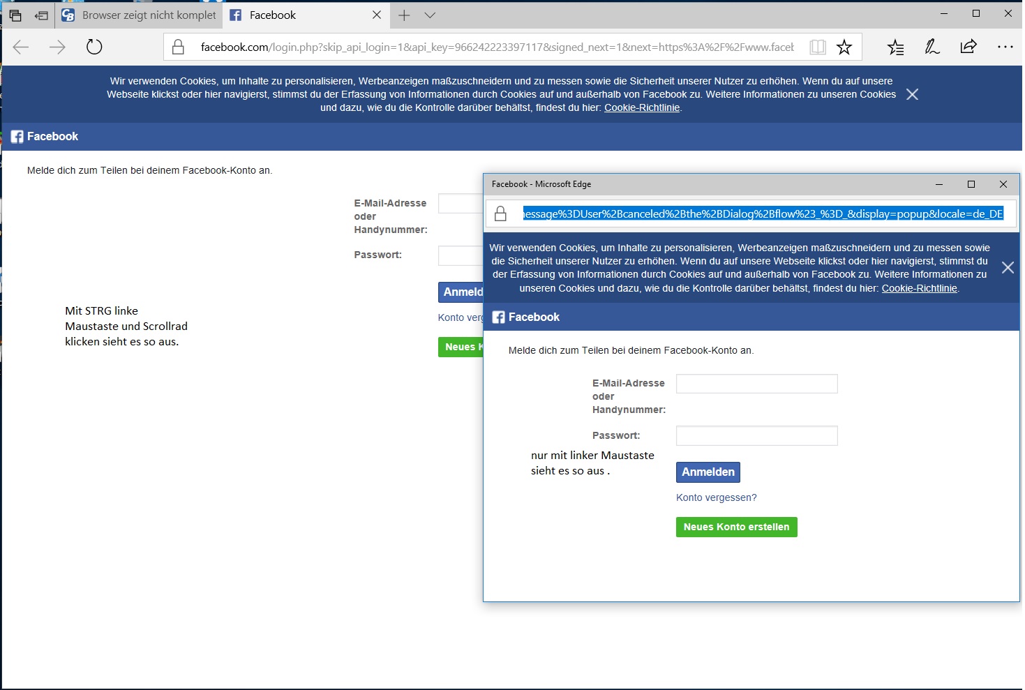 Ich habe folgendes Problem ,wenn ich auf einen Link klicke mit der linken Maustaste öffnet sich ein Fenster was bald aus schaut wie ein Popup Fenster , nur mit Adressleiste ohne Lesezeichen Leiste und so weiter .