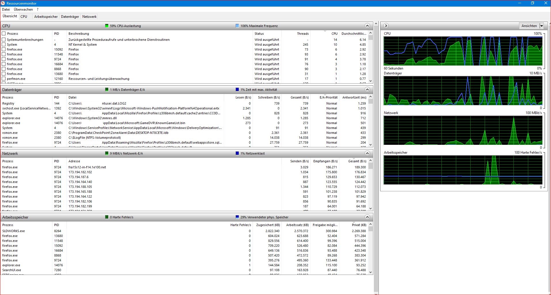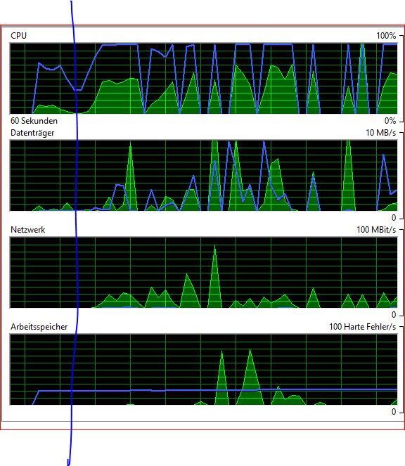 Auf den Bildern hab Ich mal die Auslastung ausgelesen die während des Problems auftreten.