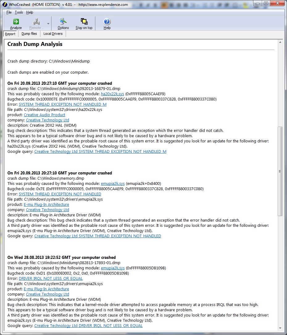 Vorher gabs ja schon Probleme das sich der Treiber gelöscht hatt in zusammen hang mit SSD´s aber seit der neusten Treiber Version gibt’s halt diese Bluescreens die auch immer auf Creative verweißen ( siehe Bild )