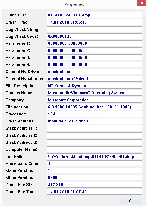 Der Fehlercode war: 0x00000133 (0x0000000000000000, 0x0000000000000501, 0x0000000000000500, 0x0000000000000000