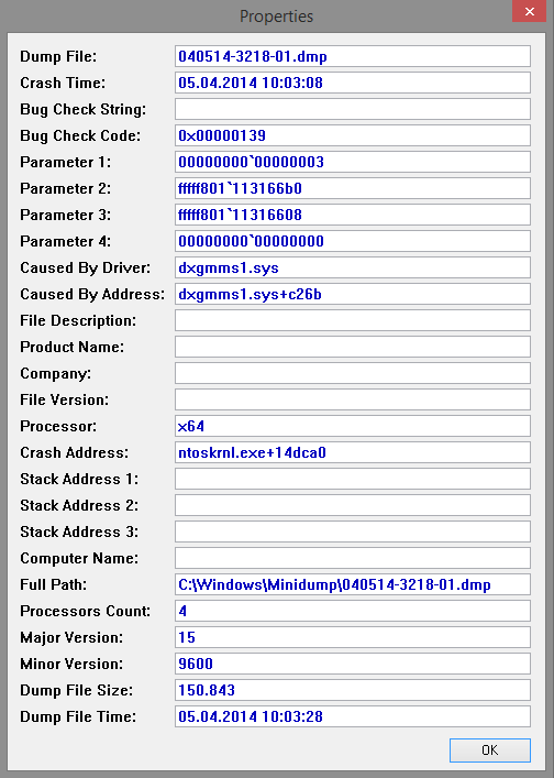 Details, die BlueScreenView ausspuckt, sind im Anhang zu finden.