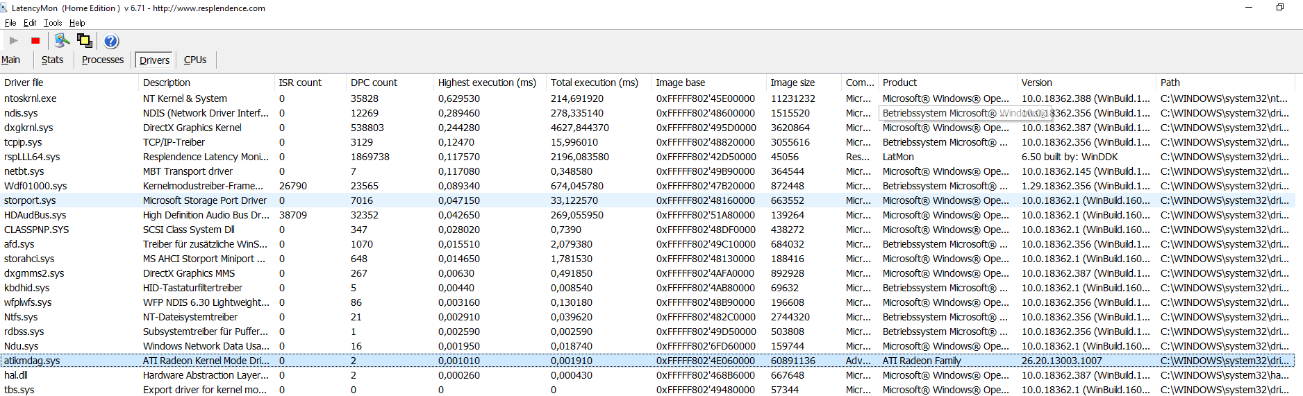 Driver with highest DPC total execution time: storport.sys - Microsoft Storage Port Driver, Microsoft Corporation