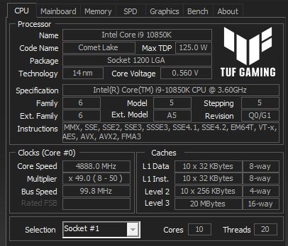 - Intel Core i9-10850k