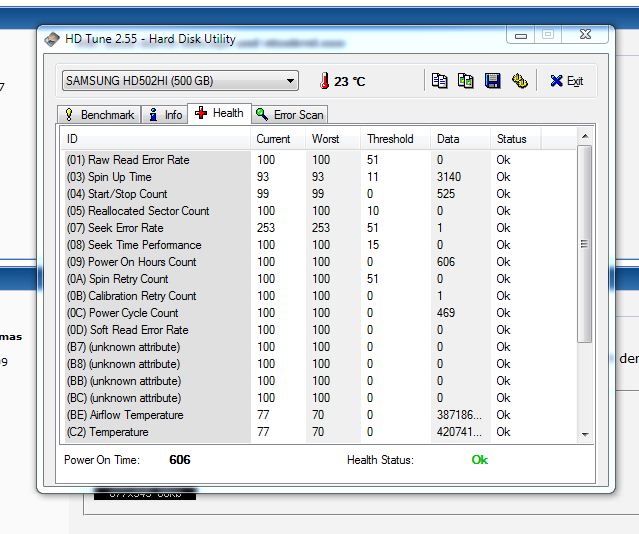 Mache aber bitte noch den Screenshot von HDTune Reiter Health. Nur wenn da OK dahinter steht, heißt das noch nicht, dass mit der Platte auch wirklich alles OK ist.