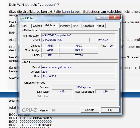 Mache zunächst bitte ein paar Screenshots von CPU-Z (Reiter Mainbaord, CPU, Memory und SPD).