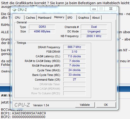 Mache bitte auch noch ein Screenshot von CPU-Z -Reiter Memory-, um zu sehen, ob die Einstellungen korrekt übernommen wurden.