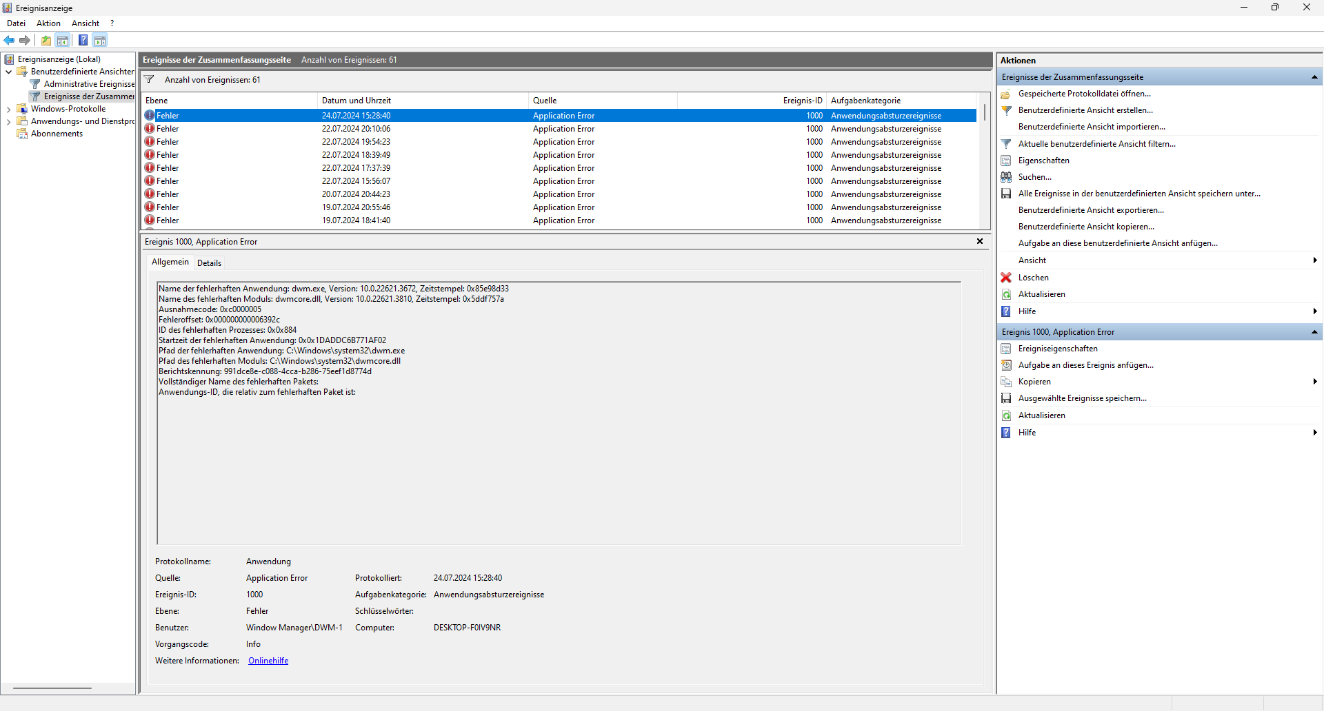 über ideen, lösungsansätze oder vorschläge bin ich dankbar. Der PC ist quasi nagelneu und das verhalten ist kritisch.