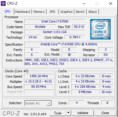 CPU: Intel(R) Corei7 6700 4.00GHz So 1151 WOF