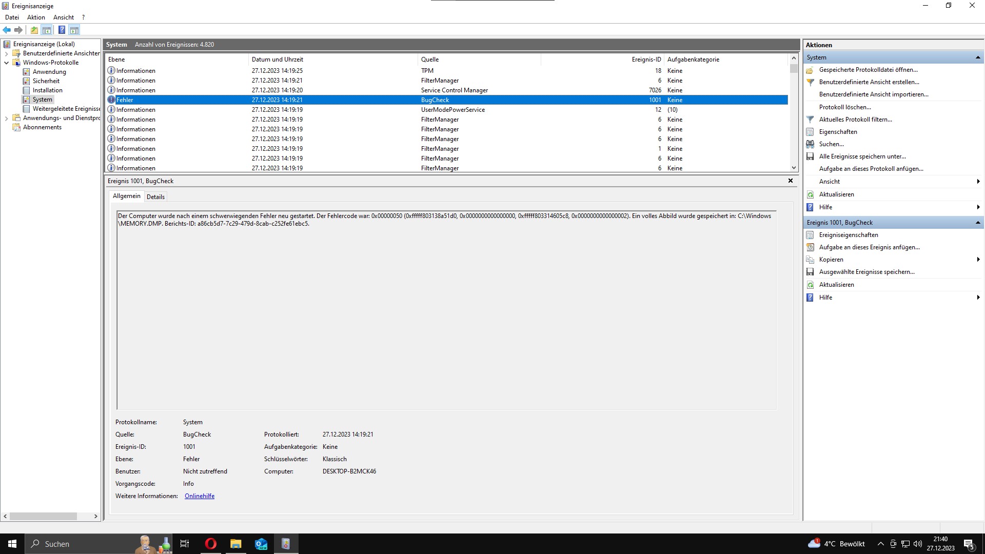 ). Nachdem Zusammenbau und der Installation von Windows samt sämtlichen Treiber, lief das ganze System circa eine Woche reibungslos und ohne Probleme, eigentlich fast ausschließlich zum zocken von Starfield, Cyberpunk 2077, World of Tanks, etc.