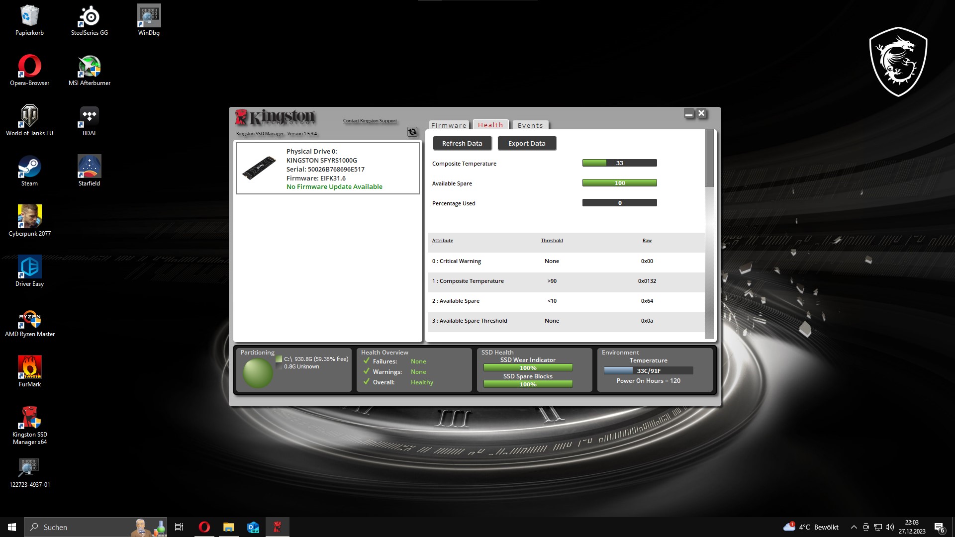 - HDD / SSD: Kingston FURY Renegade SSD 1TB M.2 2280
