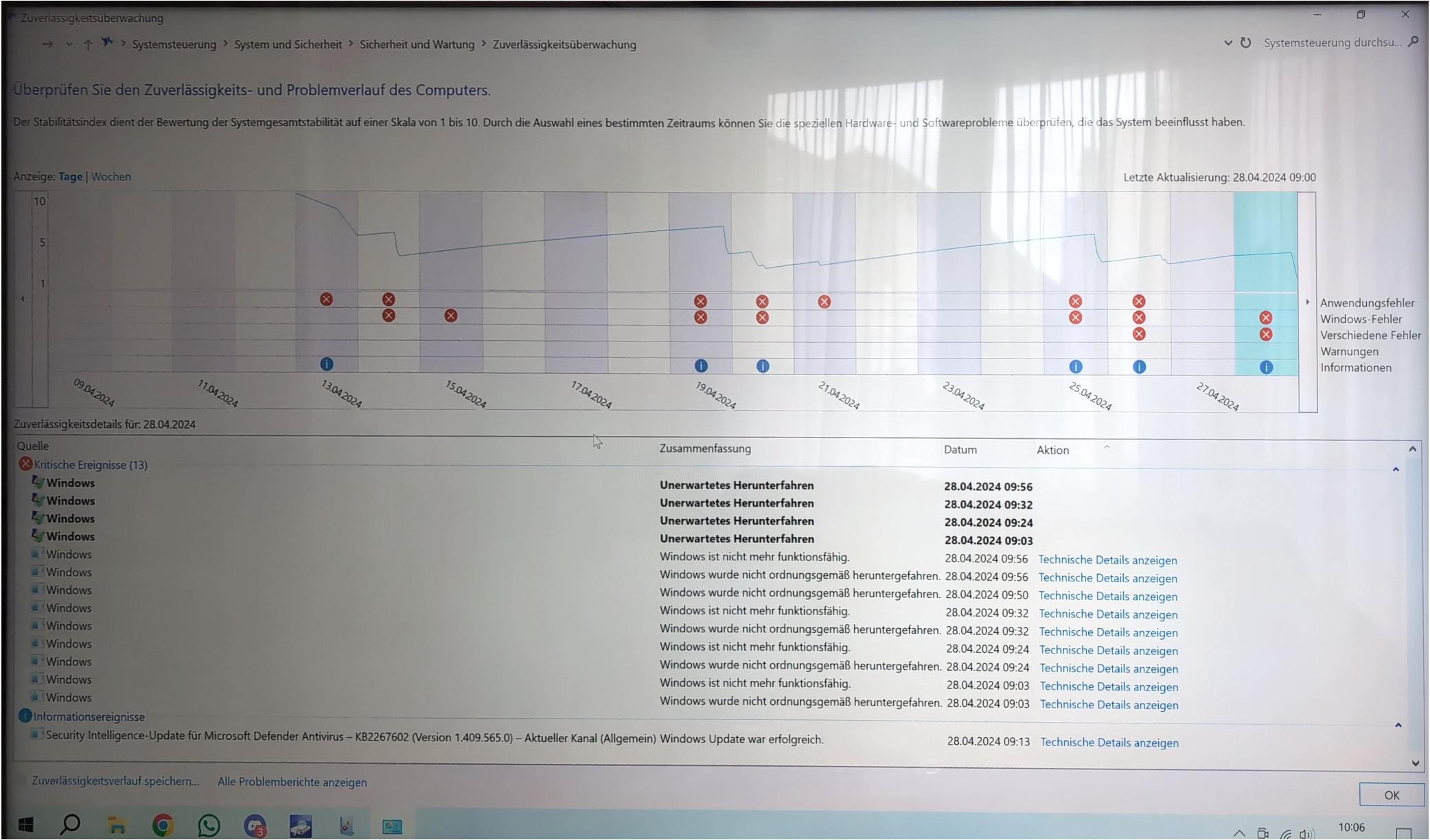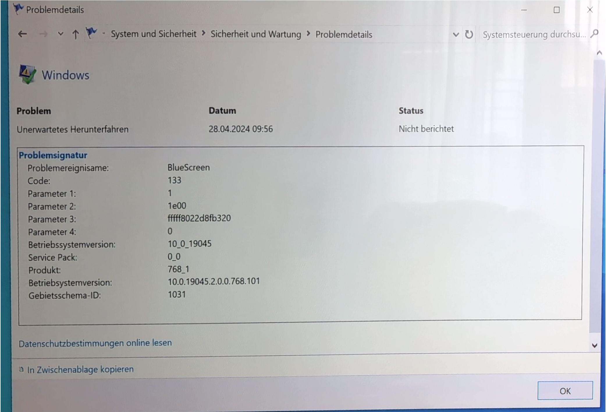 - Weitere Hardware, die offensichtlich mit dem Problem zu tun hat (Monitormodell, Kühlung usw.): CSL CPU Kühler (CPU Temps in Ordnung, nicht über 70°C)