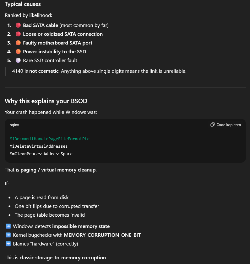 Nach dem BSOD gab es direkt einen zweiten, der sieht aber etwas anders aus. Ich hab den auch mal in den Anhang gepackt.