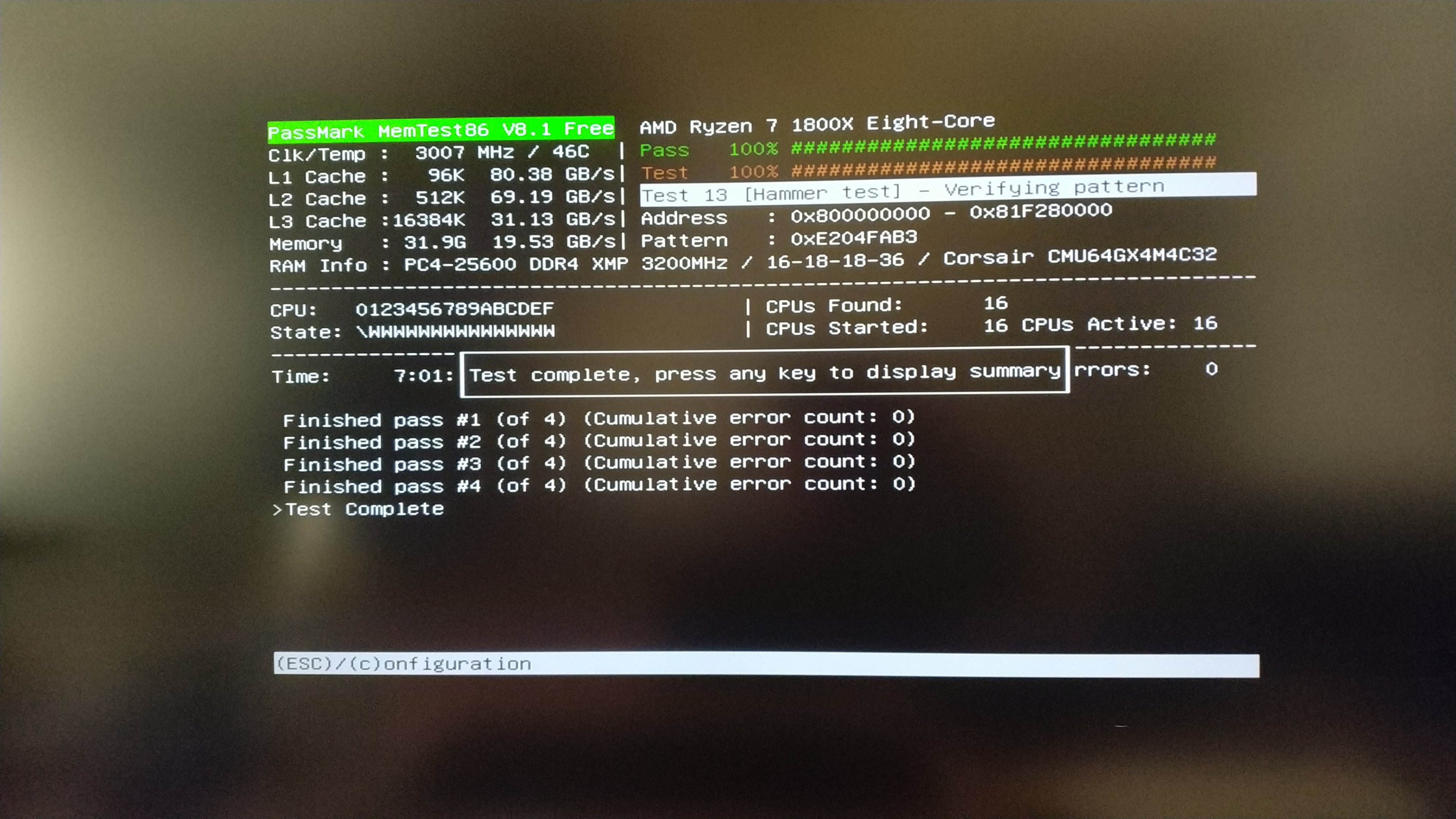 BIOS Settings auf default, lediglich xmp profile für den ram gesetzt