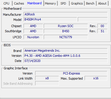 Mainboard: AsRock B450 Pro4 (BIOS-Version 3.6)
