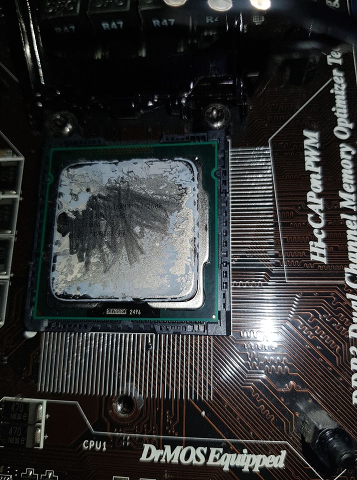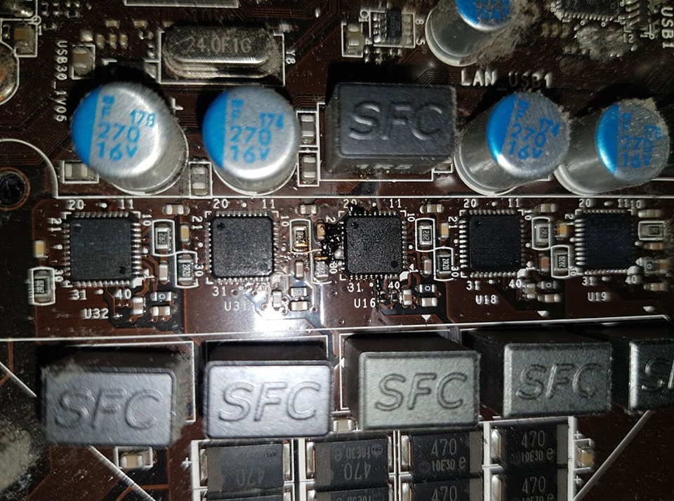 Zur gleichen Zeit hat es verbrannt oder verkokelt gerochen. Habe sofort alles ausgemacht, gelüftet und danach den Pc aufgeschraubt, aber keinen Sichtbaren Brand- oder Schmorfleck entdeckt. Auch keiner der Kondensatoren auf Mainboard oder Grafikkarte ist kaputt oder verformt.
