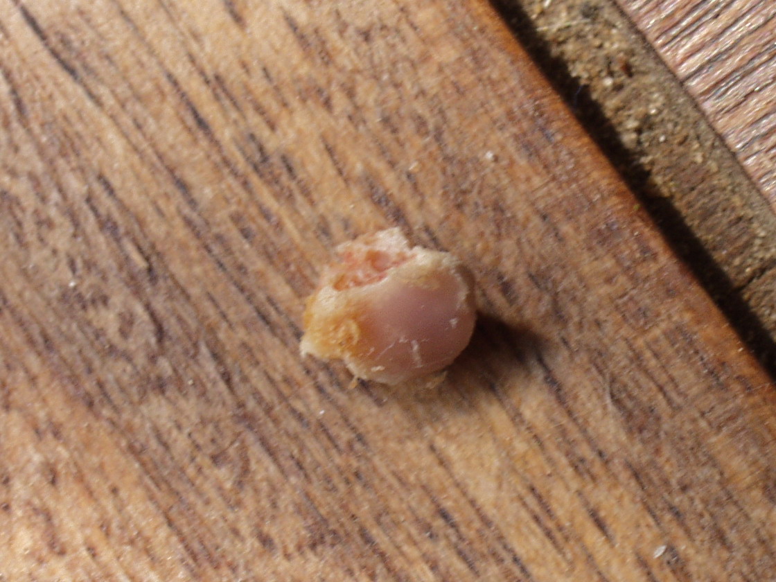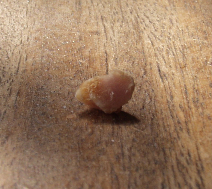 Von der Neugier gepackt spuckte ich das Harte Ding aus.