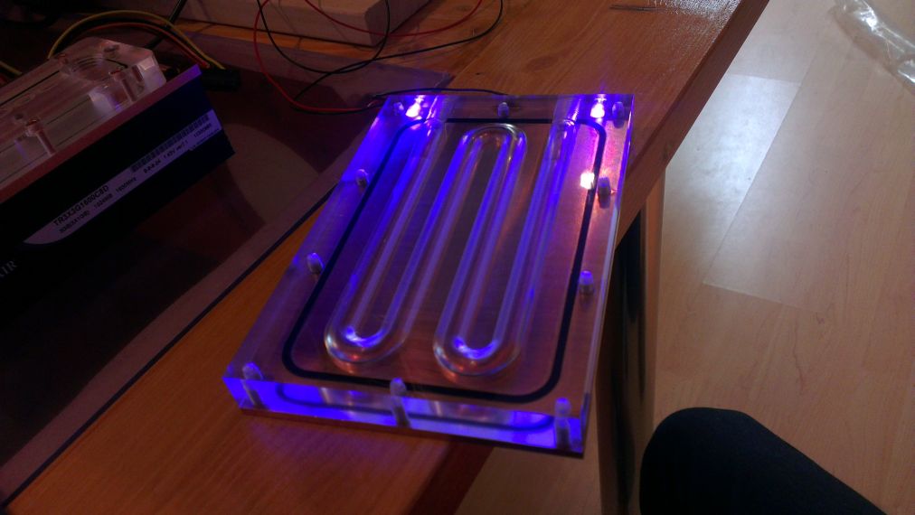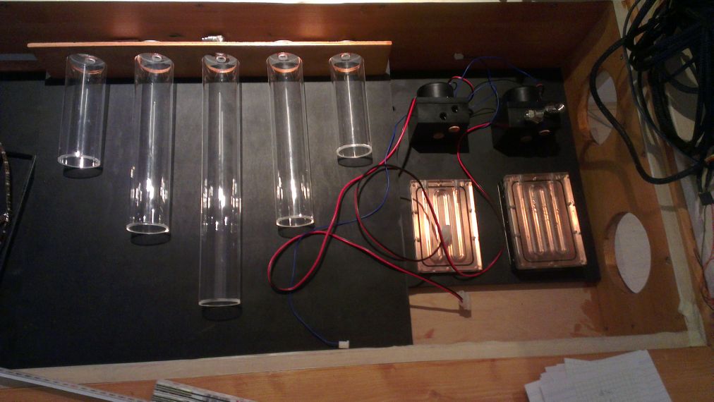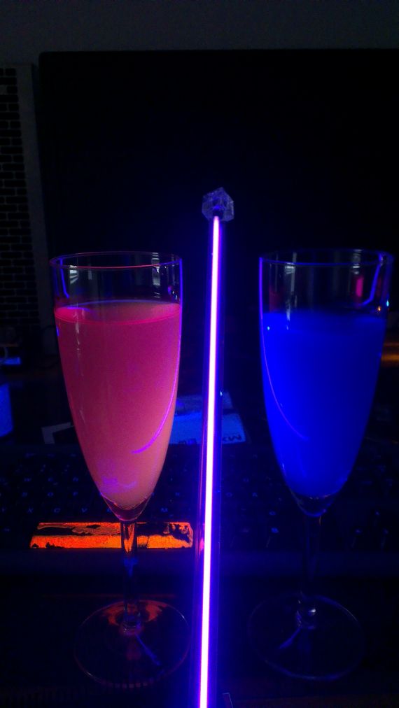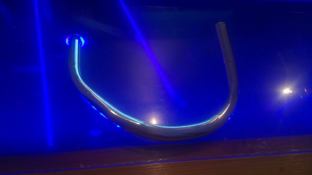Dann habe ich mal eine UV-Kathode in den tisch gelegt und musste feststellen, dass meine Baumarkt-Schläuche total anfangen zu leuchten