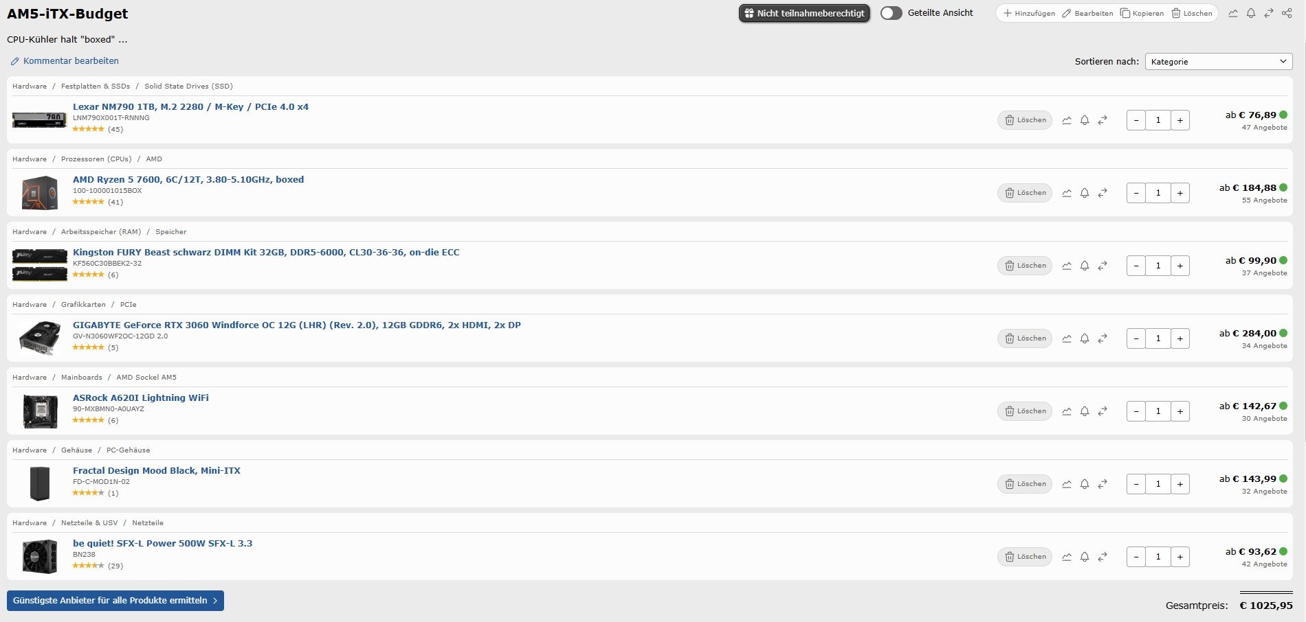 - Eines der oben genannten Gehäuse; so leise wie bei diesen Systemen eben möglich. Eventuell auch Aufrüstbarkeit beachten.
