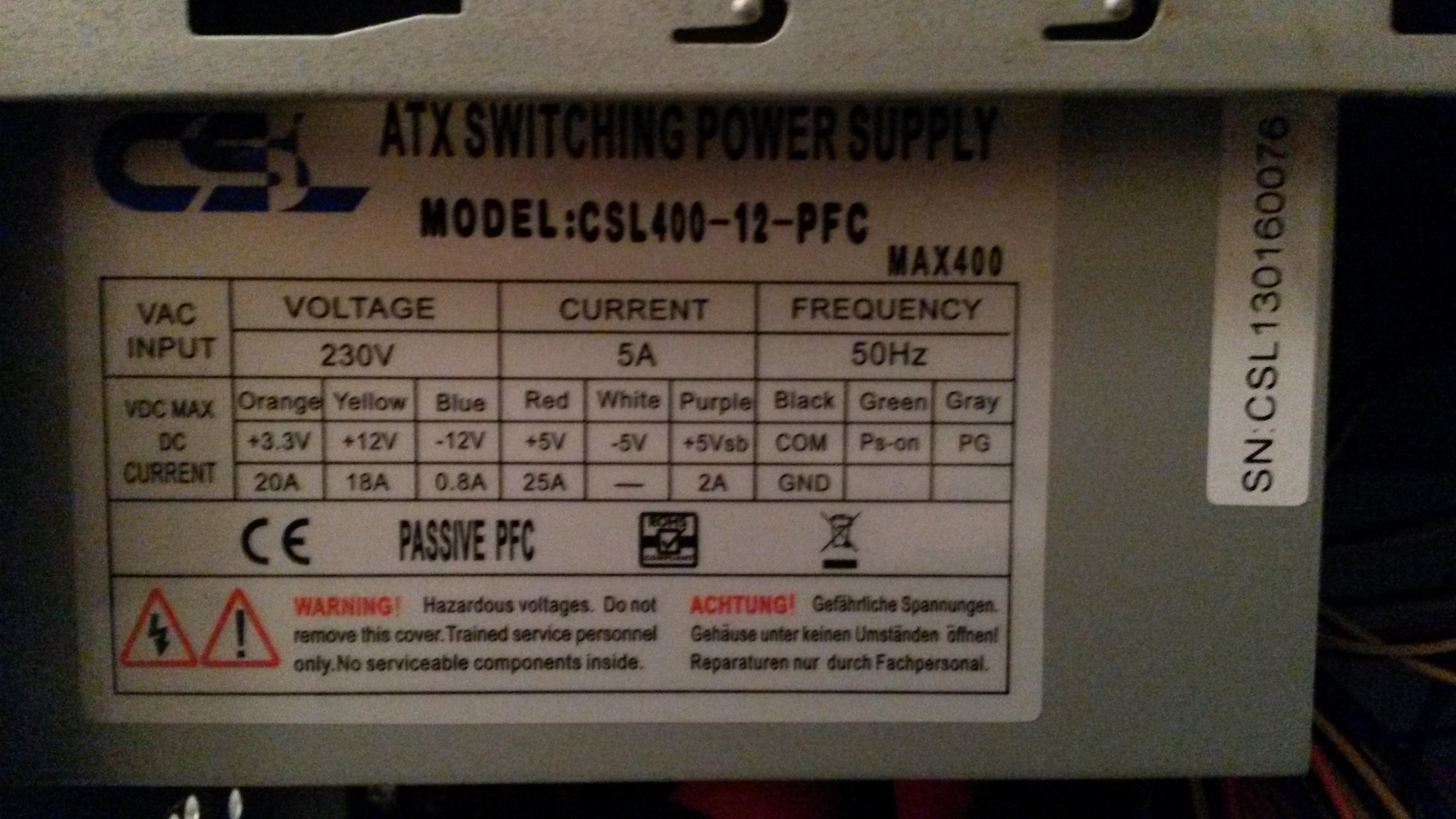 Ist kein Marken-Netzteil. Wie im ersten Post beschrieben, handelt es sich um ein "CSL"-Netzteil mit 350 W. CSL verbaut die vermutlich in allen derer "Aufrüst-PCs"...