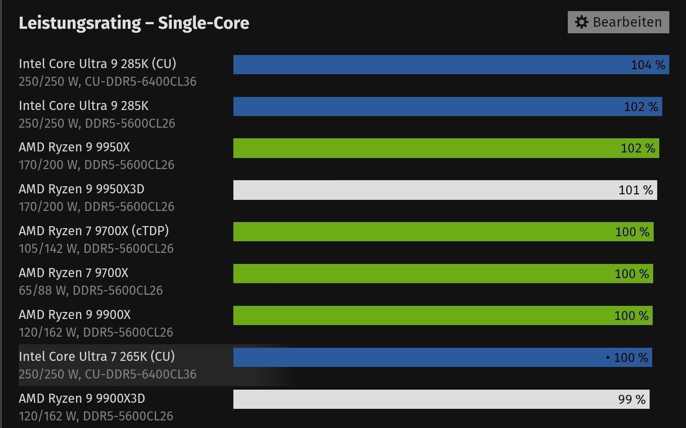 Am Ende ist der 265K im Mittel ein paar % schneller im Multicore, je nach Anwendung kann es aber auch andersrum sein.