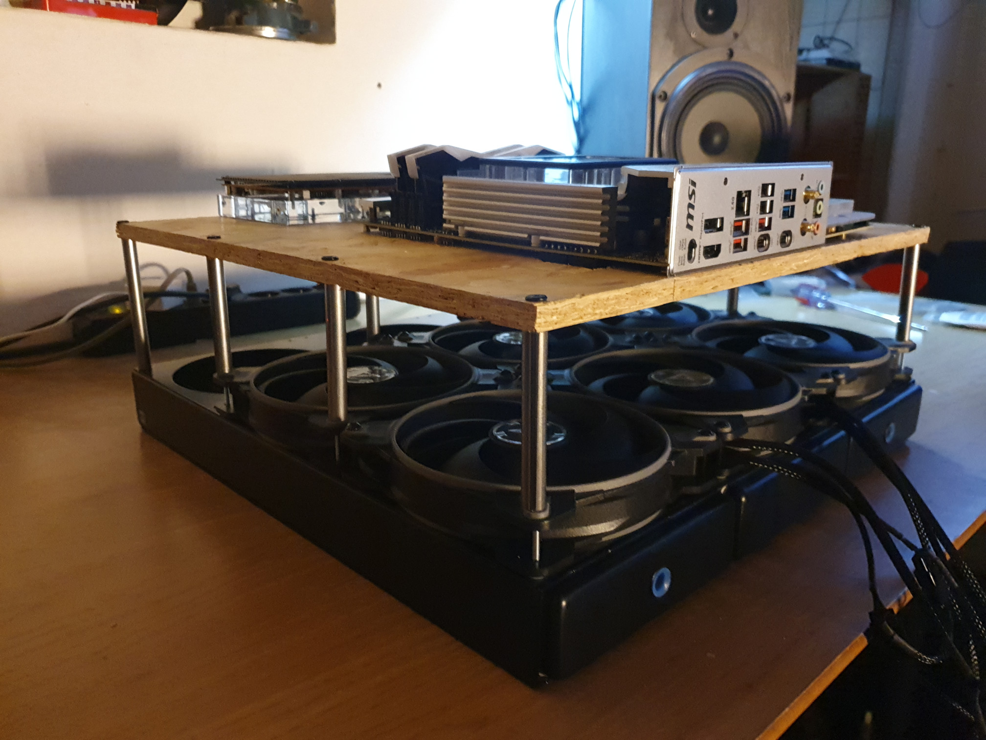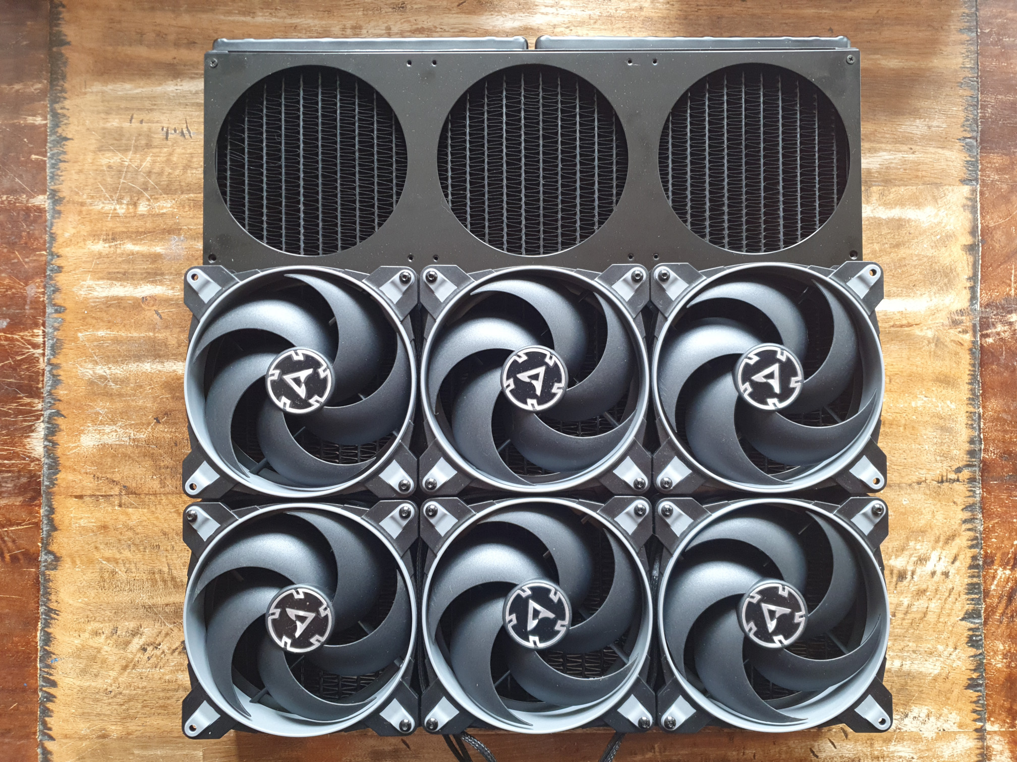 Beide sichtbaren Komponenten haben ihre Tube-Fittings auf der Rückseite der Holzfrontplatte. Der Raum zwischen der Frontplatte und dem Radiator wird mit magnetischen Aufsätzen (und Lüftungsgittern) abgedeckt. Beim Sockel bin ich mir noch nicht sicher, da alle I/O-Kabel ordentlich zusammengeführt werden müssen.
