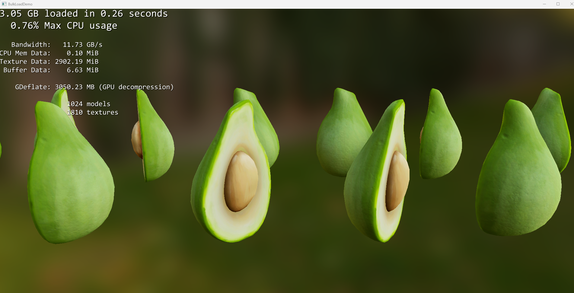 Test BulkLoadDemo Benchmark: Die Community testet DirectStorage 1.20 mit Avocados 🥑