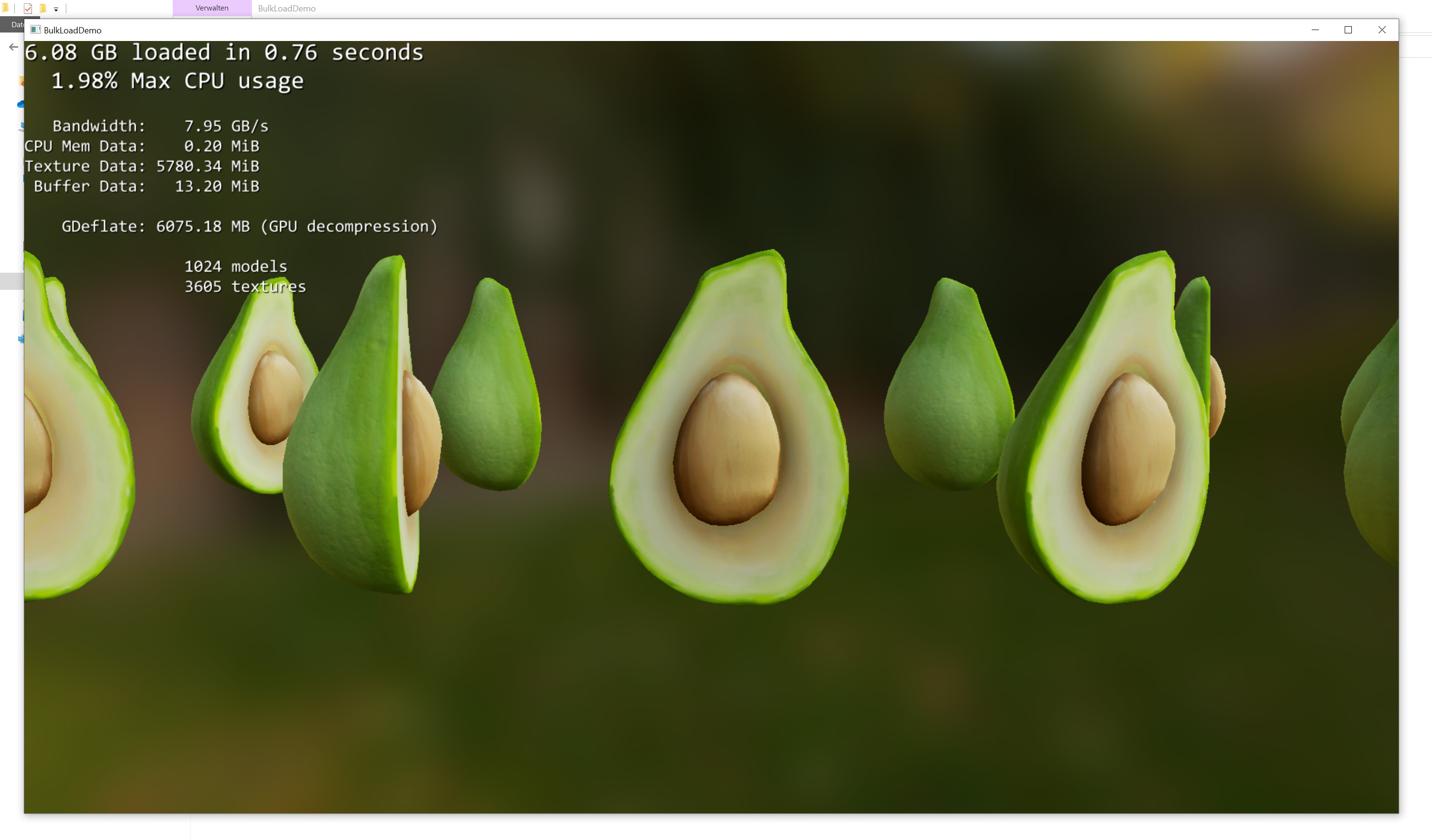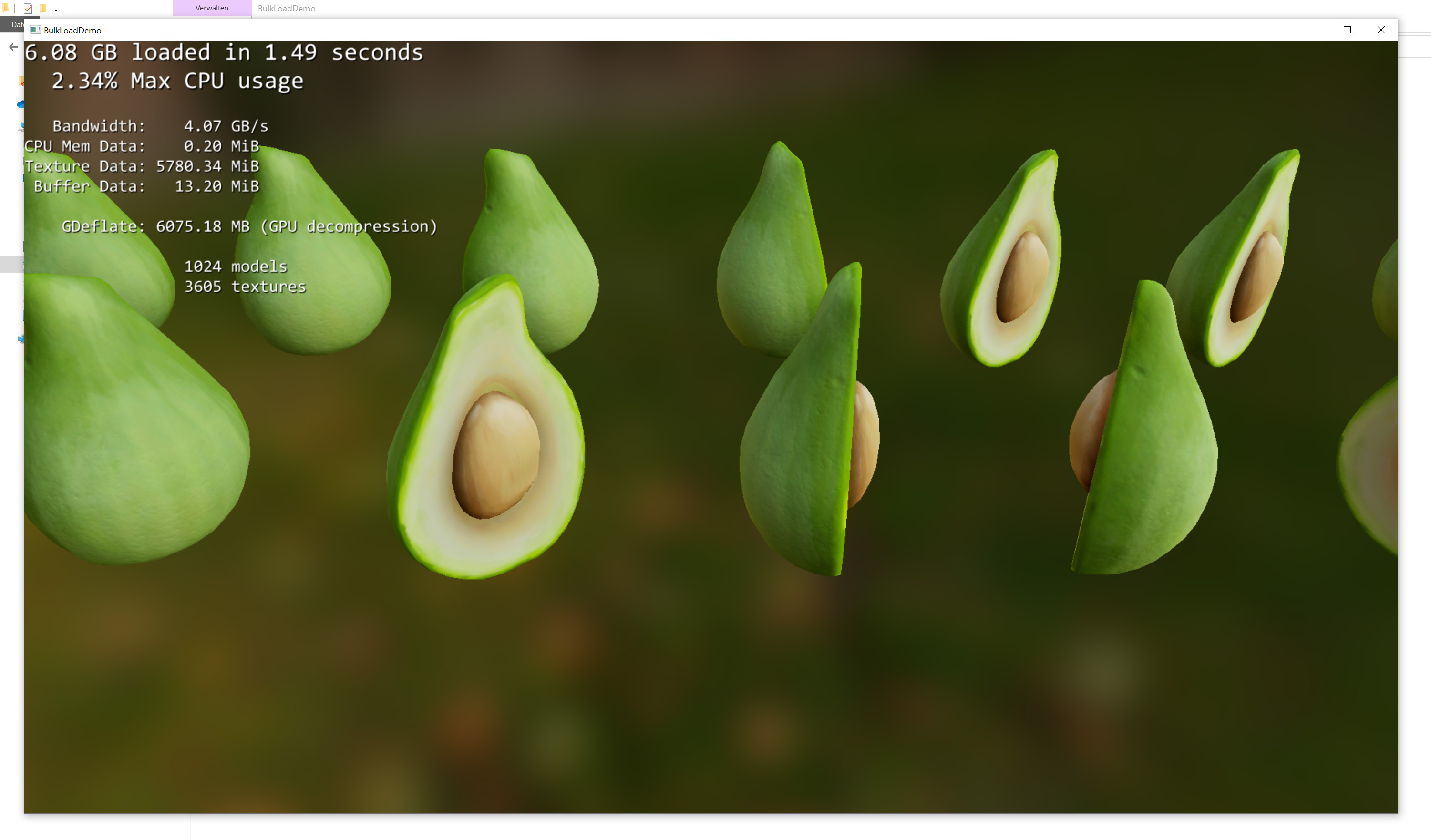 Test BulkLoadDemo Benchmark: Die Community testet DirectStorage 1.20 mit Avocados đ„