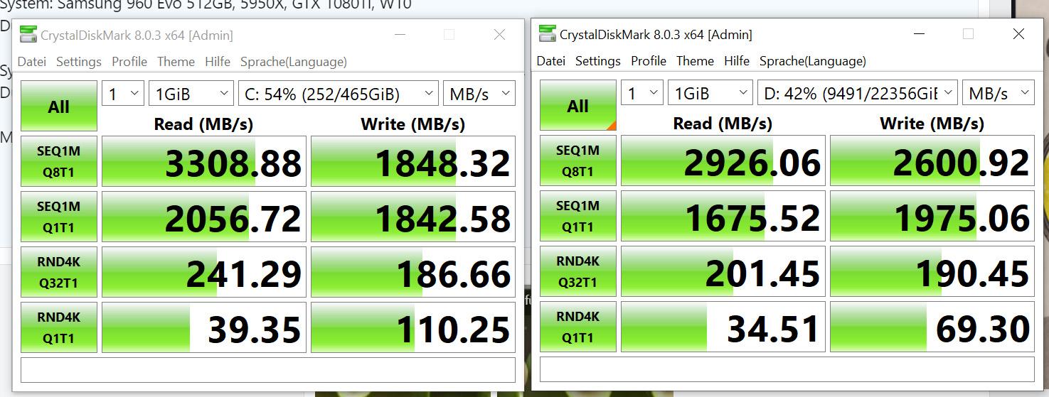 Mein SATA Raid ist erstaunlich flink, wÀhrend die 960 Evo irgendwie schwÀchelt.