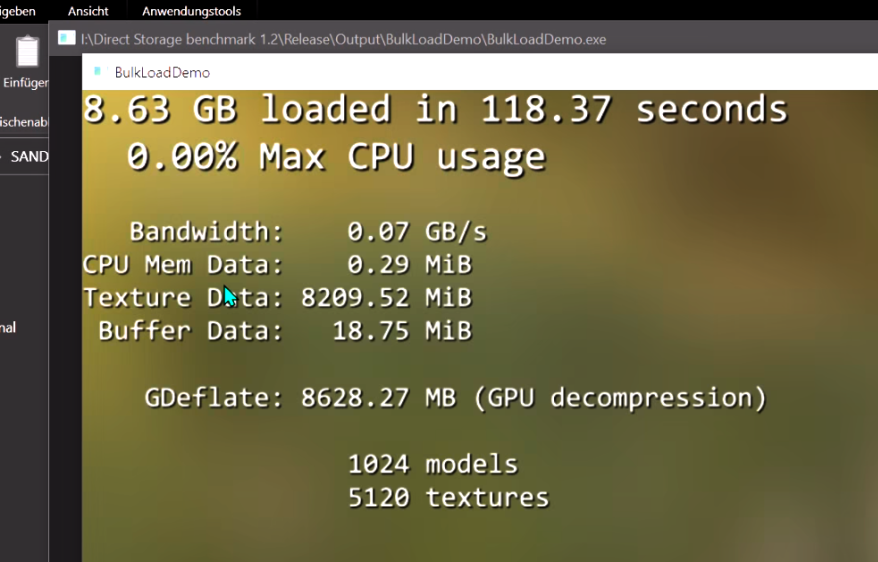 Test BulkLoadDemo Benchmark: Die Community testet DirectStorage 1.20 mit Avocados đ„