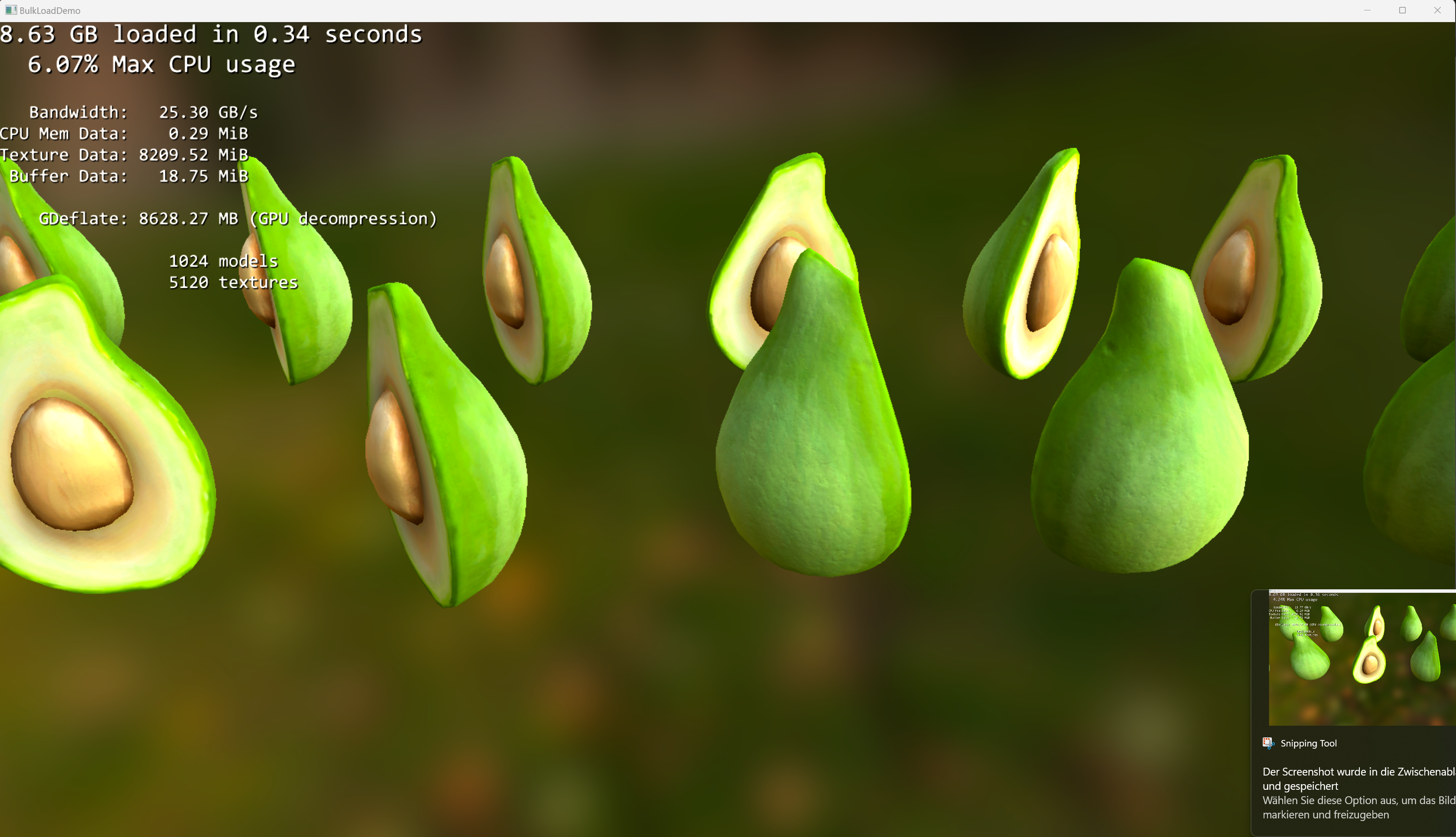 Test BulkLoadDemo Benchmark: Die Community testet DirectStorage 1.20 mit Avocados 🥑