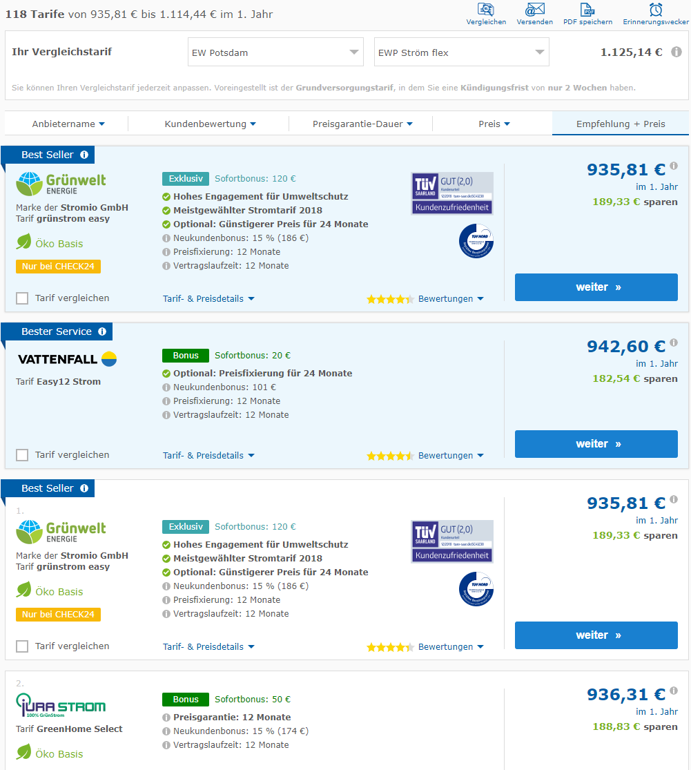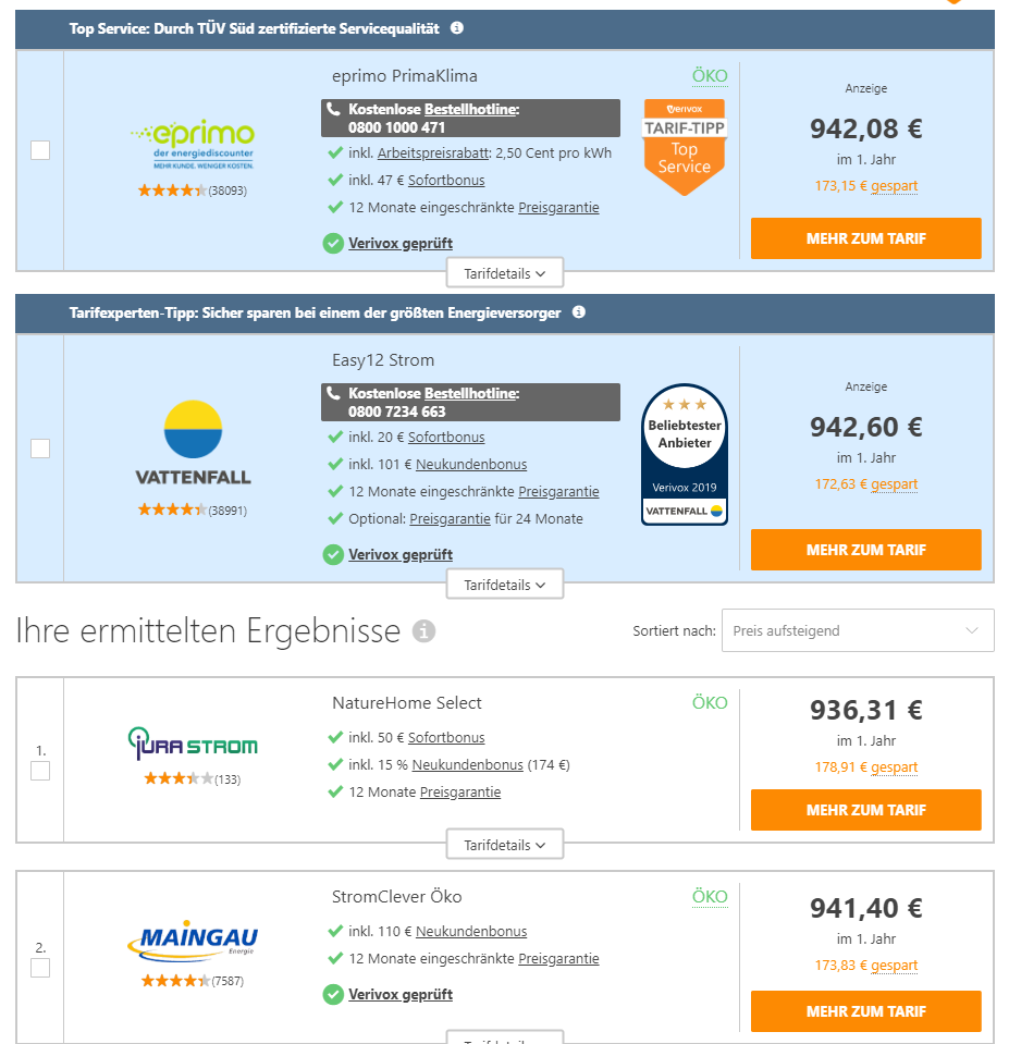 Und dein Stromvergleich ist vielleicht zu klein gewesen. Vielleicht gibt es bei Verivox noch einen guten Tarif. Teste auch mal Aldi Strom oder Yello Basis. Die Tarife gibt es auch in keinem Vergleich. Oder kennst du Bonustarife ab? Dann kann man natürlich nichts sparen.