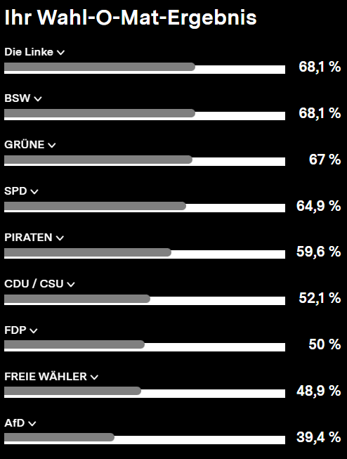 Da sind wir uns einig. Ist nur schwierig jetzt für dich zu verargumentieren, wenn die CDU unter Merz Elemente aus dem AfD Programm für ihr Wahlprogramm abgeschrieben hat und genau so wie die AfD über Anträge und Gesetzesänderungen abstimmt 😅
