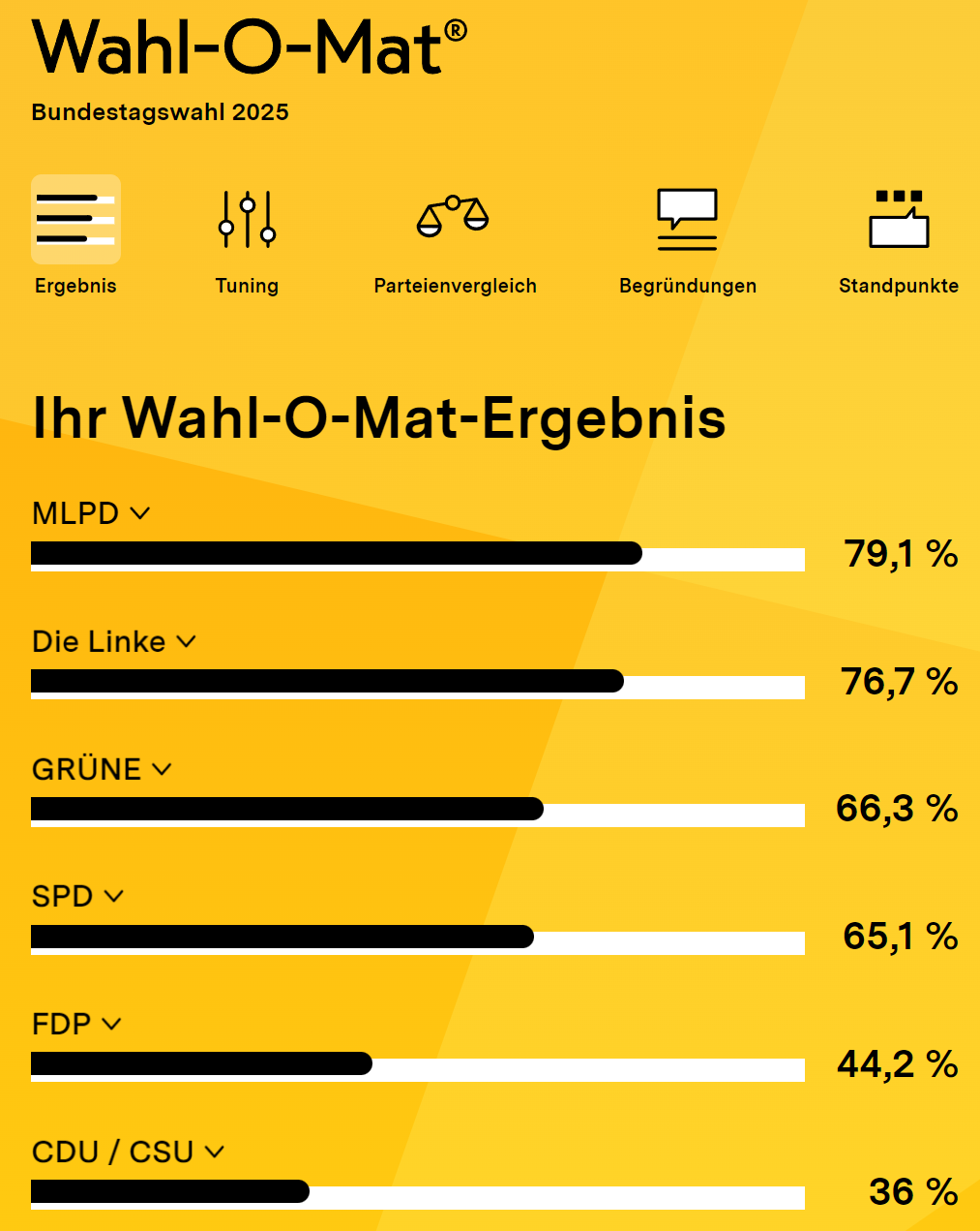 Wieso sollten, wenn ALLE Protestwähler die jetzt die AfD NUR aus Protest wählen und NICHT weil sie gerne die AfD unetrstützen wollen die Tierschutzpartei wählen, dann hätte die vermutlich so 15-20%. Wieso würden diese Stimmen dann verpuffen?xexex schrieb:Weil sich dann nichts ändert, die Stimme löst sich in Luft auf, und die aktuell regierenden Parteien können weiter wie gehabt regieren. Die Neuwahlen hätten wir uns dann auch ganz sparen können.