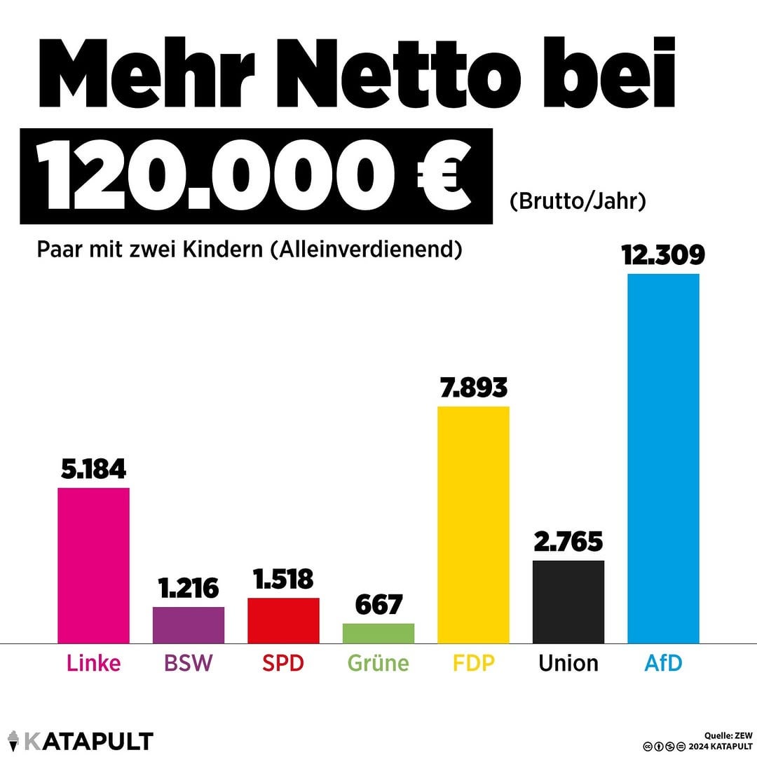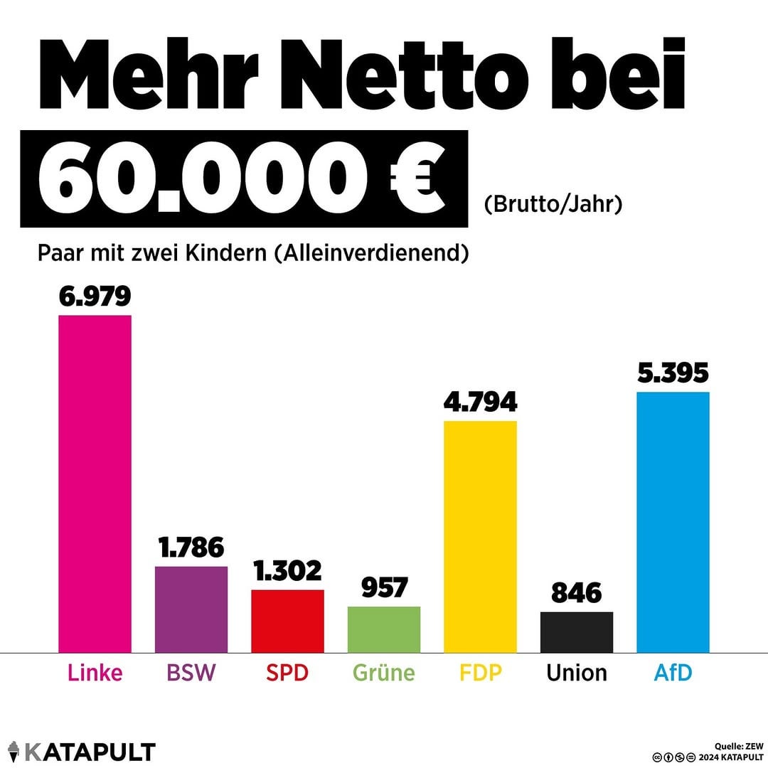 Ist zwar nur ein Themenbereich, darf man aber auch gern beim Setzen des Kreuzchens berücksichtigen: Wie sich die Wahlentscheidung auf das Netto auswirkt.
