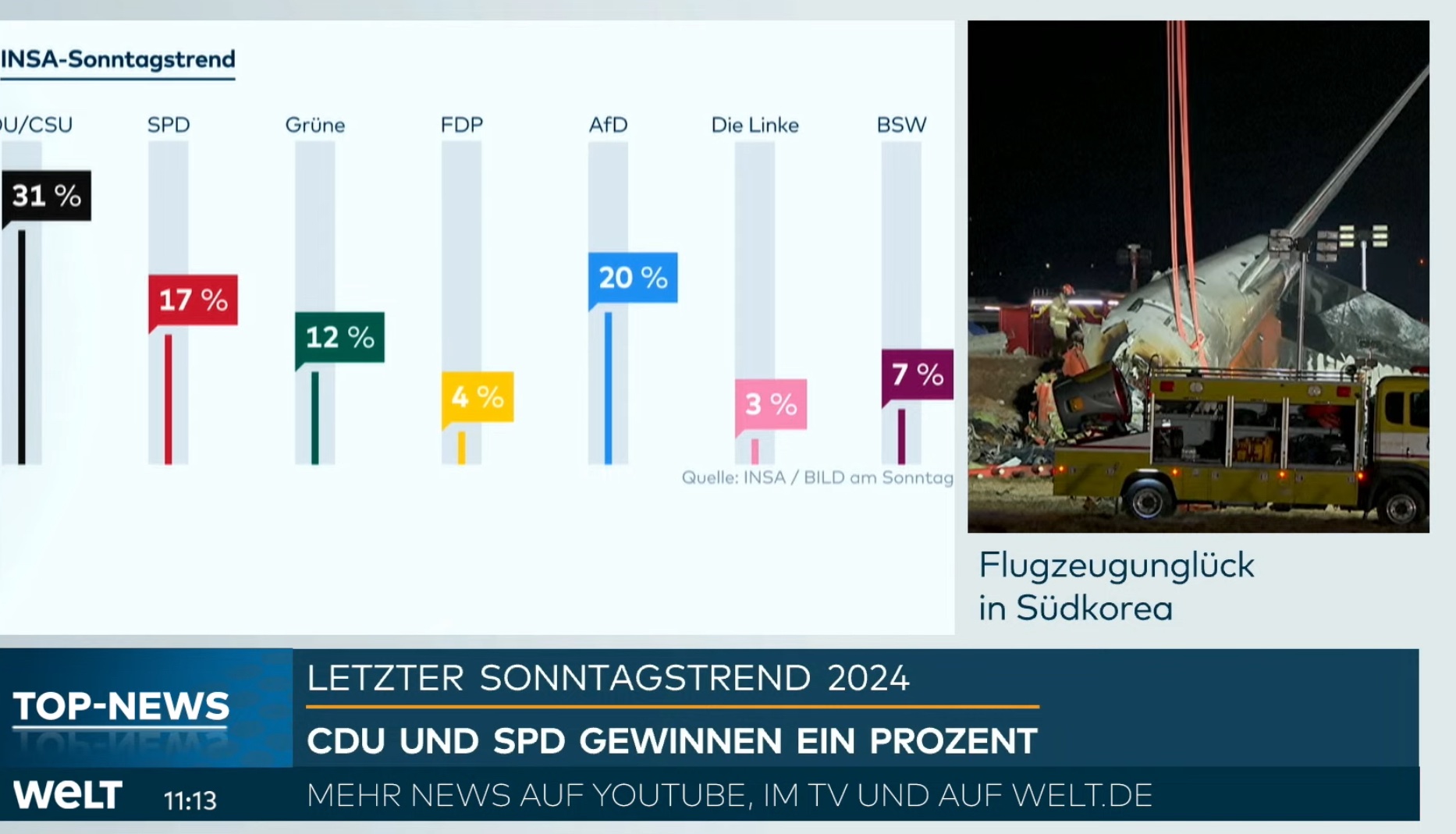 1. CDU 2. AFD 3. SPD, dann Grüne/BSW/FDP