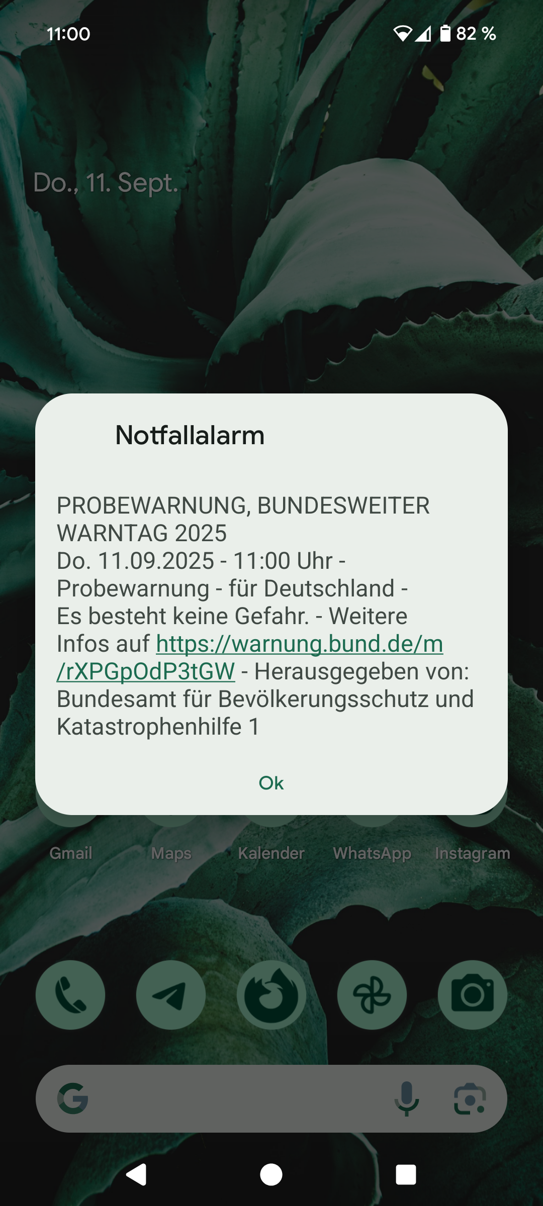 Katwarn kam erst um 11:02 Uhr mit einer Warnung um die Ecke Dafür waren Cell-Broadcast und Nina pünktlich um 11 am Start und ich hab mich doch erschrocken!!