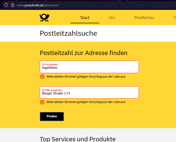 Ingelheim hat 4 Postleitzahlen.SuperHeinz schrieb:Was ja auch richtig ist: https://www.postleitzahl.org/suche.html?type=plz&string=55216&submit= Finde!