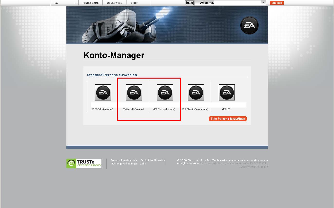 Allerdings würde ich gern einen anderen Namen aus einem anderen EA-Account (Battlefield 2) verwenden.