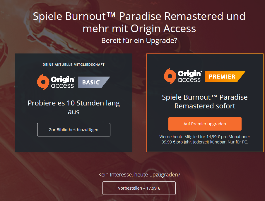 00_BPRSite.png), gelange ich als Origin Access Kunde auf eine weitere Seite um hier das Abo für mehr Rabatt zu ändern , bzw. das Spiel so zu bekommen, oder kann da auf "Vorbestellen 17,99€" klicken (