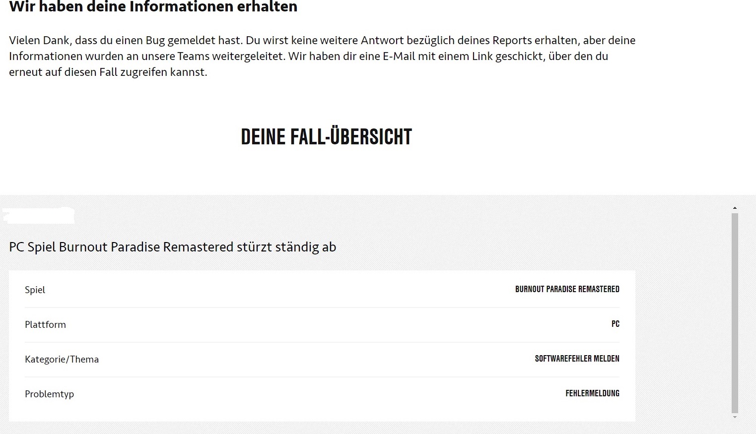Hab mir letzte Woche das PC Spiel Burnout Paradise Remastered gekauft über Steam wenn ich das Spiel starte kommt ein kurzes Intro dann stürzt das Spiel ab keine ahnung warum mein PC ist auf dem Neusten Stand andere PC Spiele laufen ohne Probleme.